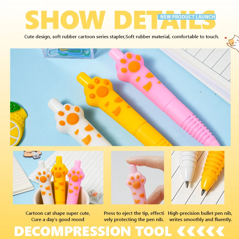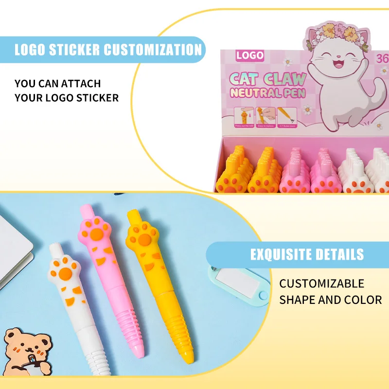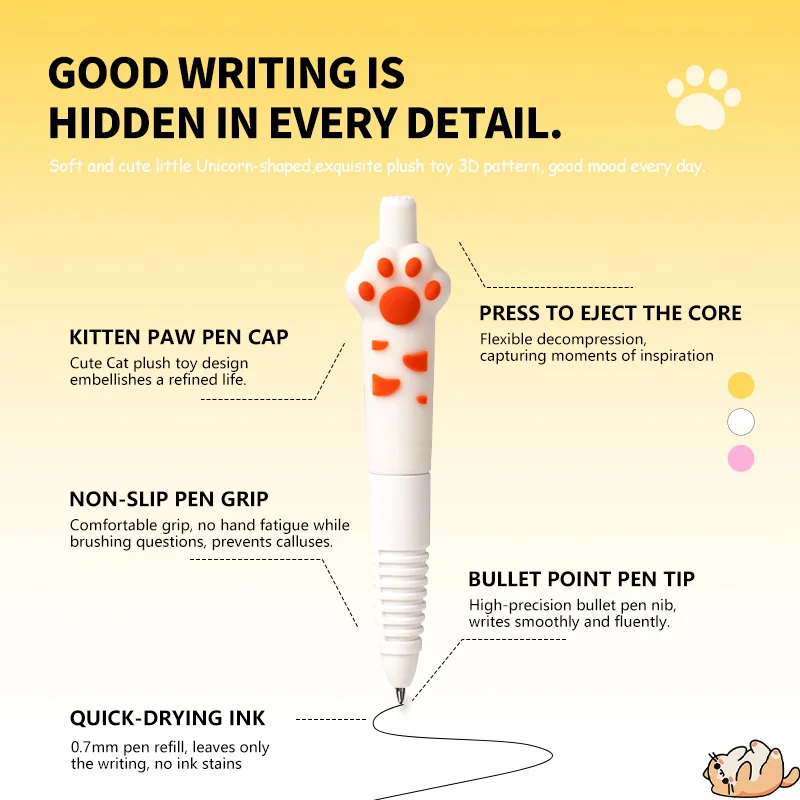 Hot-Selling Kawaii Cartoon Cat Paw Gel Pen - Retractable Student Stationery, Top-Rated School Supplies on AliExpress